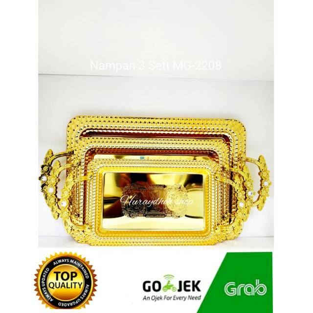 Maaf telat ngasih komentar . Kuota habis oleh sebab itu nunggu dulu. Untuk item Nampan Arab 3 Set Mutiara B Gold Stainless aku paling cinta . sampun gitu aja ya.