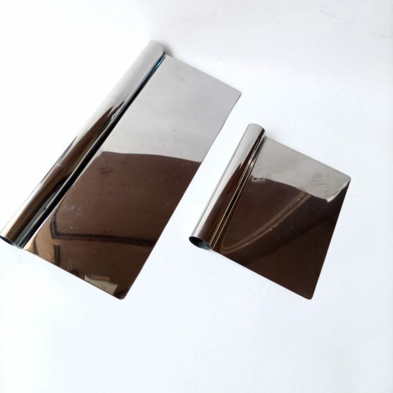 Scrapper Pemotong adonan kue atau bisa juga untuk meratakan adonan butter cream pada kue tart...material stainless steel Tebal 0,5mm dengan ukuran Pendek 15x10cmPanjang 25