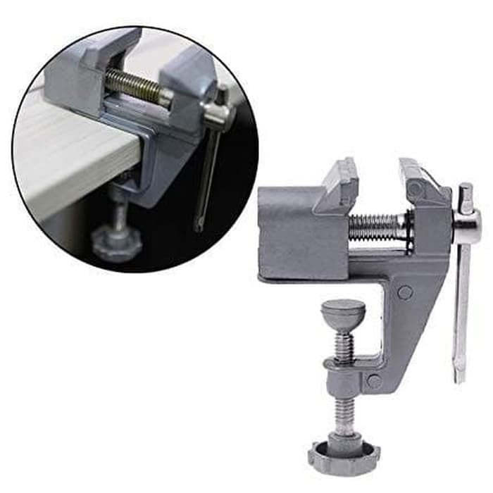 Vise Clamp Capit Meja Alat Penjepit Kayu - 12E8F3 - SilverClamp capit meja ini berfungsi untuk menahan barang ketika ingin dipotong atau digergaji. Cocok sekali digunakan untuk kerajajinan kayu yang tentunya membutuhkan penahan. Jadi, ANda tak perlu memegang kayu terus menerus yang membuat tangan pegal dan bahkan bisa terluka.Safety Jaw ClampPenjepit kerajinan tangan yang membantu memudahkan Anda untuk memegang benda tanpa menggunakan tangan, sehingga tangan Anda dapat bergerak bebas untuk memahat, menghias benda tersebut.Clamp of Viseclamp capit meja sangat bagus untuk proyek-proyek kecil perhiasan, penggemar, kerajinan, model bangunan, dan banyak lagi.AluminumKonstruksi bodi aluminium ringan dengan rahang mesin untuk aman memegang bulat, datar dan benda kerja dengan bentuk aneh lai