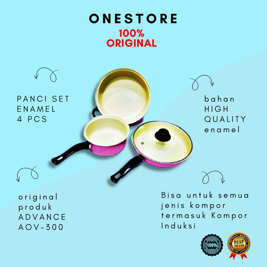 SELAMAT DATANG DITOKO ONE STOREHari kerja Senin - Sabtu Jam 08.00-16.00Minggu / libur nasional toko tutup yaaORDER SEBELUM JAM 16.00 DIKIRIM HARI YANG SAMAMEMBELI=SETUJUSelamat Berbelanja di toko kami kakABOUT:* Produk Original dan Berkualitas.* Produk Branded Dengan Harga Kompetitif.* Belanja Mudah, Aman dan Terpercaya.Foto atau gambar produk sama sekali tidak direkayasa.Perbedaan antara foto dengan aslinya, maksimal 5% sampai 10% karena faktor pencahayaan.========================Deskripsi Produk :Selamat datang ..Semua produk di etalase kami adalahReady stock dan siap dikirimTerima kasihPanci set enamel warna , Bisa untuk kompor induksi..Panci berbahan enamelWarna yg menarik dilihat dan mudah di bersihkan ,,Bisa untuk semua jenis kompor termasuk Kompor Induksiterdiri dari 3 panci dan 1 tutup kacaPanci Penggorengan Set Siap Pakai Bahan coating Enamel BerkualitasTerdiri dari Berbagai Panci dan Pernggorengan*24 cm Fry pan ( tutp kaca bisa memakai tutup yg sama dengan sauce pan )*24 cm Souce Pan plus tutup kaca*18 cm milk panPanci yang pasti sangat memperindah dapur BundaPanci dengan kualitas baik,Bisa untuk kompor in