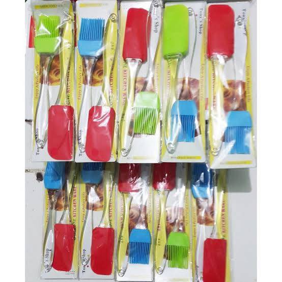 Deskripsi KUAS SILICON SET ISI 2 SPATULASPATULA KUAS SILIKON SETSpatula & Kuas karet silikon yang tahan panas khusus untuk keperluan memasak, menabur selai, melumuri minyak, menghias kue / cake, baking tools, cooking for barbequi / BBQ, sate, martabak, donut, dllDIMENSI :Spatula 19cm x