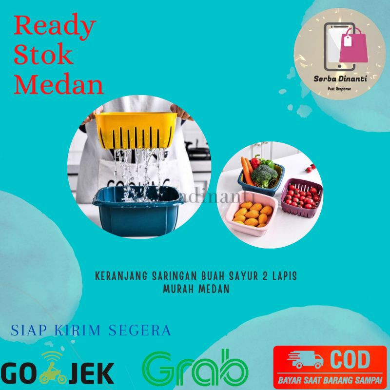 Barang Ready MedanKeunggulan : - Kini Buah Dan Sayuran Yang Dicuci Di Baskom Tidak Akan Mudah Jatuh Saat Ditiriskan- Terdapat Tutup Wadah Supaya Bisa Digunakan Sebagai Wadah Penyimpanan- Saat Ingin Meniriskan Buah Dan Sayuran Yang Dicuci , Cukup Mengangkat Keranjang Tirisan Pada Wadah Saringan Buah - Mudah DigunakanWarna : - Biru Tua- Hijau- Pink- Biru MudaUkuran: 22 x 22 x 11 cmHappy Shopp