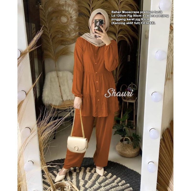 bahan mostcrepe ld116cm pjg85cm kcg hidup full+celana pinggang karet Lp maximal 98cm pj